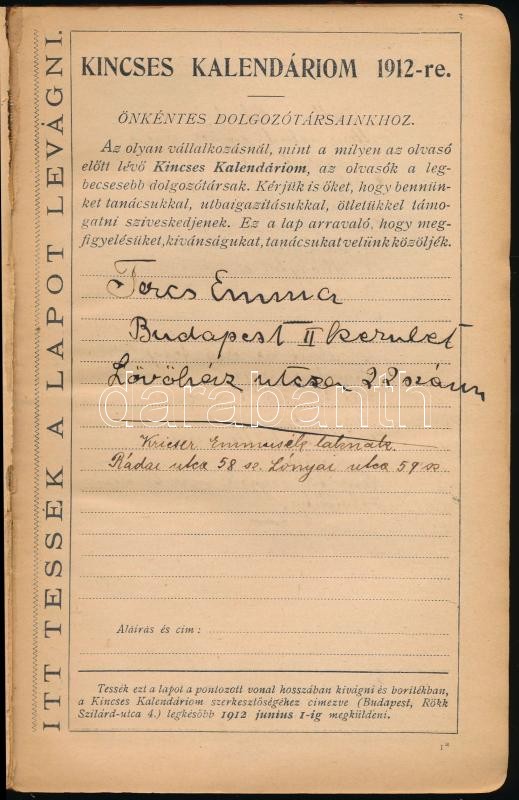 1912 Kincses Kalendárium. A gyakorlati élet általános utmutatója. XVI.... https://www.darabanth.com/en/307-Online-auction/307.0/Other-collectibles/Printed-Materials~30/1912-Kincses-Kalendarium-A-gyakorlati-elet-altalanos-utmutatoja-XVI-evf-Bp-Rakosi-Jeno~II1628896