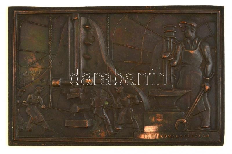 Kauderer jelzéssel: Kovácsológyár, bronz plakett, 11x17 cm