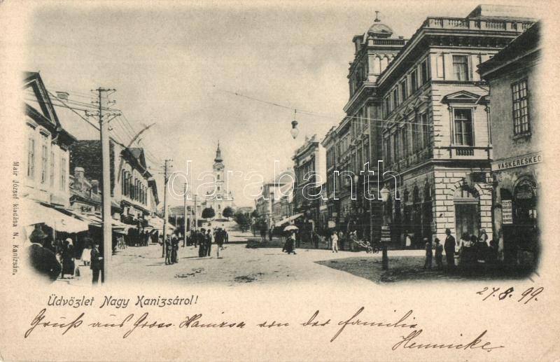1899 Nagykanizsa, utcakép vaskereskedéssel. Mair József kiadása (EK)