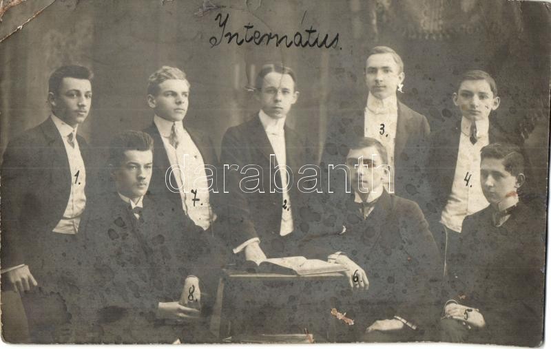 1909 Győr, Fekete internátus nyolc tagja, diákok, photo (fa)
