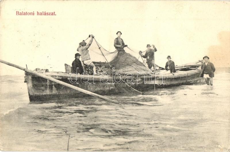 Balatoni halászat, háló kivetése. Divald Károly 1061-1907.
