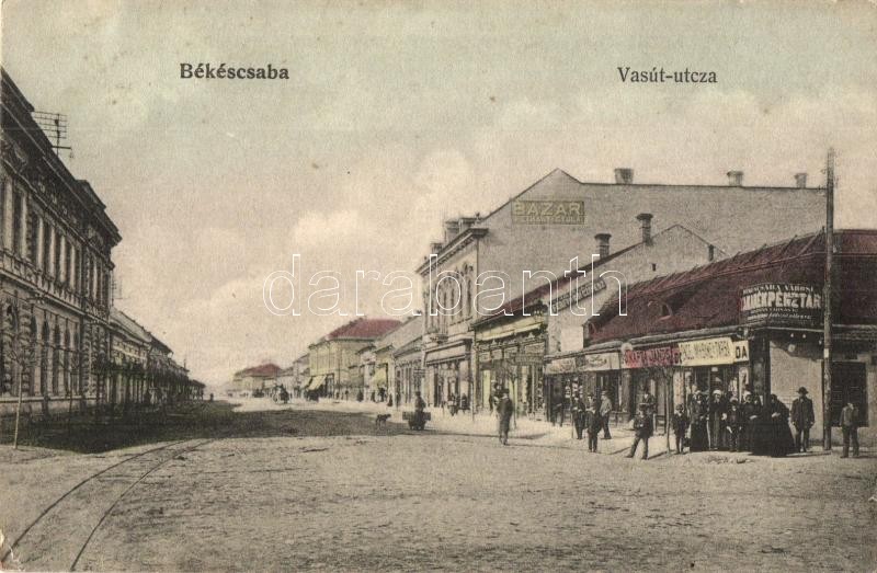 Békéscsaba, Vasút utca, Takarékpénztár, Petrányi Gyula bazár, Adler La... https://www.darabanth.com/en/307-Online-auction/307.0/Postcards/Hungary~400005/Bekescsaba-Vasut-utca-Takarekpenztar-Petranyi-Gyula-bazar-Adler-Lajos-cipesz-Ifj-Kapt~II1663486
