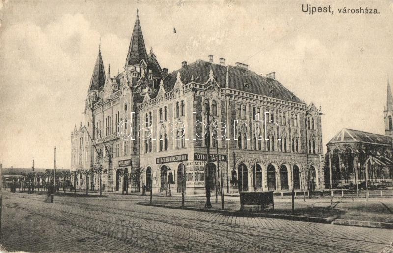 Budapest IV. Újpest, Városháza, Tóth és Társa műasztalosok üzlete, Máté Ambrus vendéglője (EK)