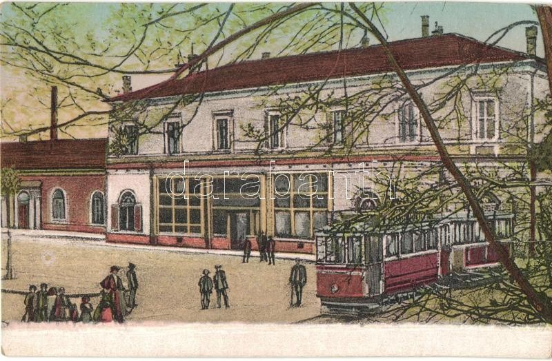Gorizia, Görz, Gorica; Südbahnhof / railway station, tram. Verlag Kunst Kartengeschäft A. Pertot