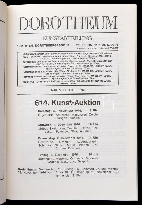 Dorotheum Kunstabteilung - 614. Kunstauktion 30. November bis 3. Dezember 1976. Bécs, 1976. Árverési katalógus, papírkötésben, jó állapotban.