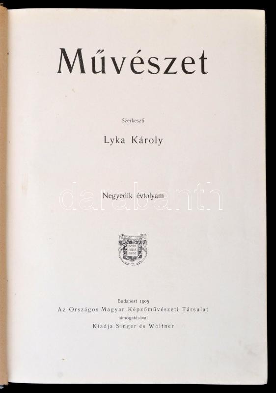 Művészet. Szerk.: Lyka Károly. IV. évfolyam. Országos Magyar Képzőművészeti Társiéat. Budapest, 1905, Singer és Wolfner, 432 p. Kiadói egészvászon kötés, Lyka Károly, Divald Kornél, Malonyay Dezső tanulmányaival, számos szövegközti, és egészoldalas illusztrációval, többek között Kaza György, Fényes Adolf, Grünwald Béla, Ferenczy Károly, Kriesch Aladár és mások illusztrációival.