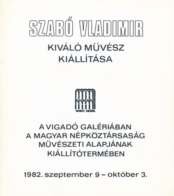 Szabó Vladimir (1905-1991) kiváló művész kiállítása. Bp.,1982, Vigadó ...