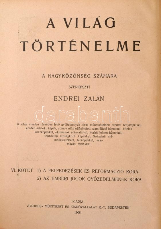 A felfedezések és a reformáció kora. A világ történelme 6. kötet. Szer... https://www.darabanth.com/en/308-Online-auction/308.0/Books/Books-History~600004/A-felfedezesek-es-a-reformacio-kora-A-vilag-tortenelme-6-kotet-Szerk-Endrei-Zalan-Bp~II1580918