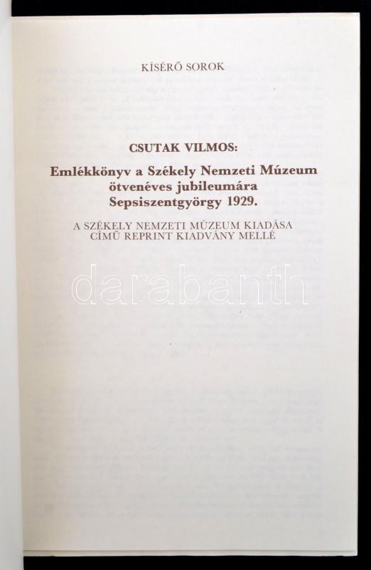 Emlékkönyv a Székely Nemzeti Múzeum ötvenéves jubileumára. Szerk.: Csutak Vilmos. 1-2. köt. Sepsiszentgyörgy, 1929, Székely Nemzeti Múzeum. Reprint kiadás (Kecskemét, é. n.), kÃsérÅ‘füzettel. Tűzött papÃrkötésben, jó állapotban.