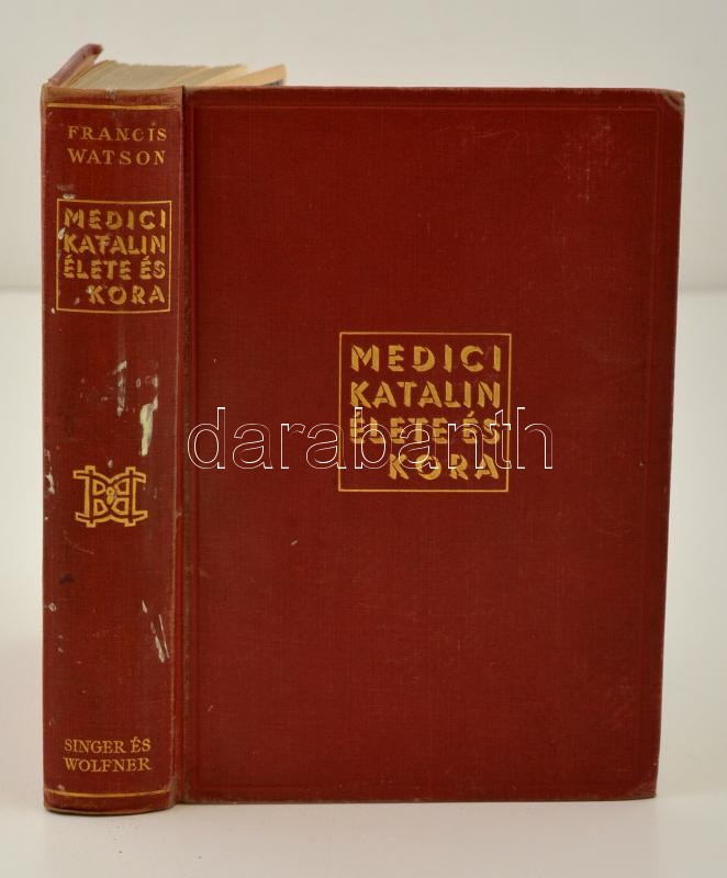 Francis Watson: Medici Katalin élete és kora. Bp., é.n., Singer és Wolfner. Kiadói egészvászon kötésben, kissé kopottas borítóval, foltos gerinccel laza fűzéssel, Medici Katalin beragasztott fotójával, fekete-fehér képekkel illusztrálva, ex libris-szel,.