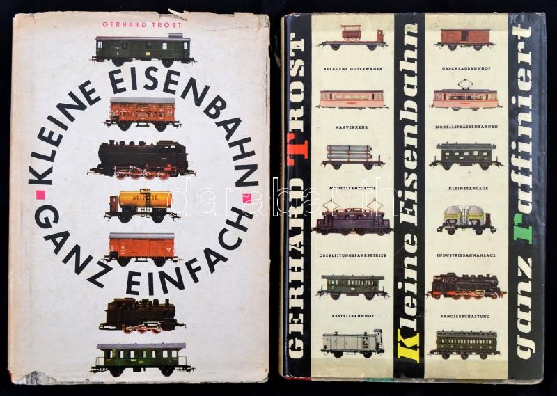 Description: 2 db német nyelvű vasútmodellező könyv: Trost, Gerhard: Kleine Eisenbahn ganz einfach (1962); Trost, Gerhard: Kleine Eisenbahn ganz raffiniert (1960). Kartonált papírkötésben, védőborítóval, jó állapotban.