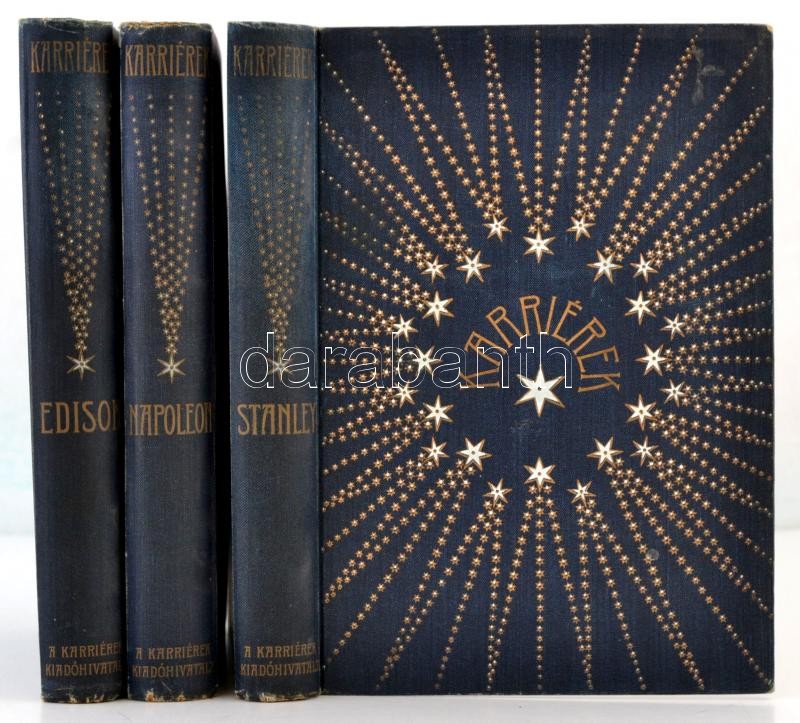 A Karriérek sorozat 3 kötete: Henry Morton Stanley (Bp., 1912); Napoleon (Bp., 1912); Edison (Bp., 1912). Kicsit kopott vászonkötésben, jó állapotban.