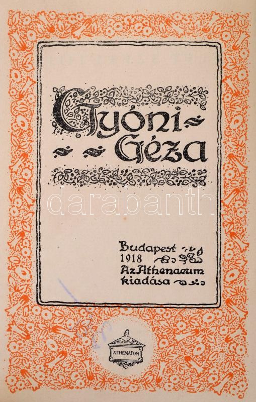 Gyóni Géza: Élet szeretője. Versek 1909-1914. Bp., 1918, Athenaeum. Má... https://www.darabanth.com/en/308-Online-auction/308.0/Books/Books-Other-rarities~500018/Gyoni-Geza-Elet-szeretoje-Versek-1909-1914-Bp-1918-Athenaeum-Masodik-kiadas-Atkotot~II1586350