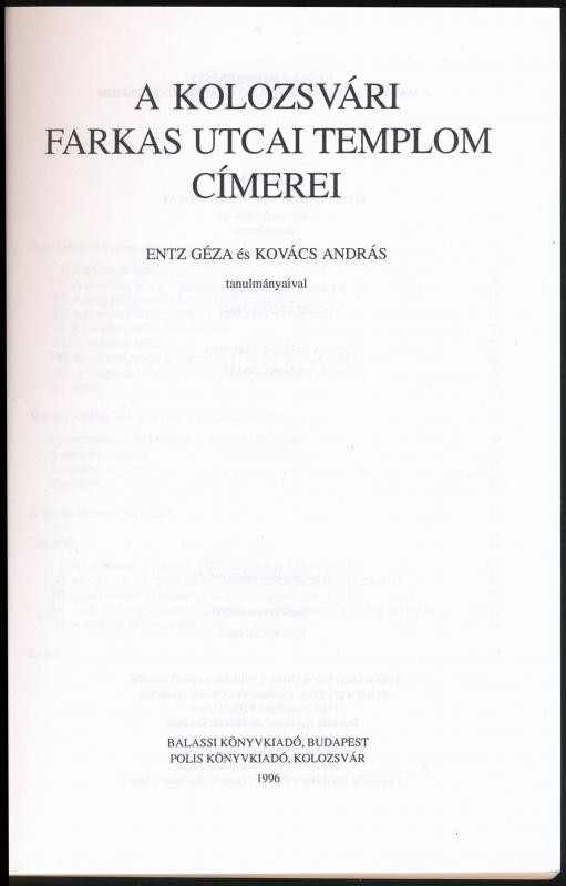 A kolozsvári Farkas utcai templom címerei. Összeáll.: Kovács András. Bp. - Kolozsvár, 1996, Balassi - Polis. Papírkötésben, jó állapotban.