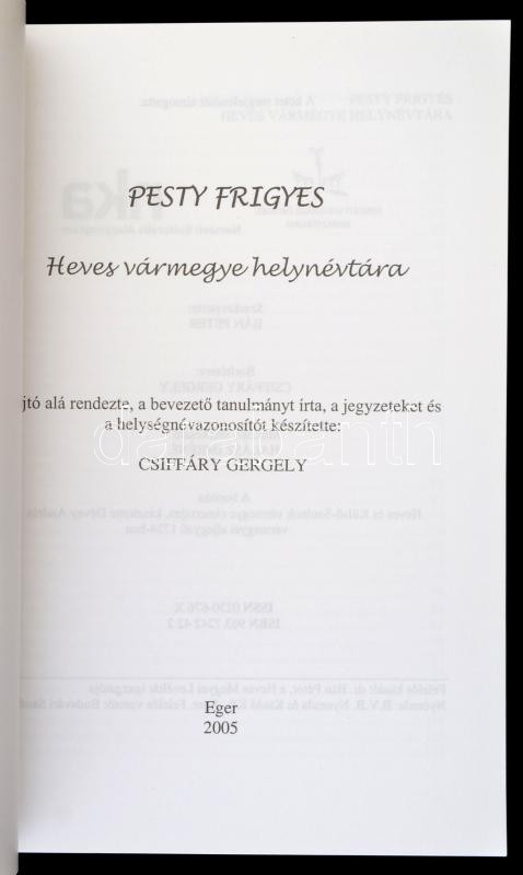 Pesty Frigyes: Heves vármegye helynévtára. Sajtó alá rendezte, a bevezető tanulmányt írta, a jegyzeteket és a helységnévazonosítót készítette: Csiffáry Gergely. Heves Megyei Levéltár forráskiadványai 11. Eger, 2005, Heves Megyei Levéltár. Kiadói papírkötés, egy kihajtható térképpel illusztrálva.