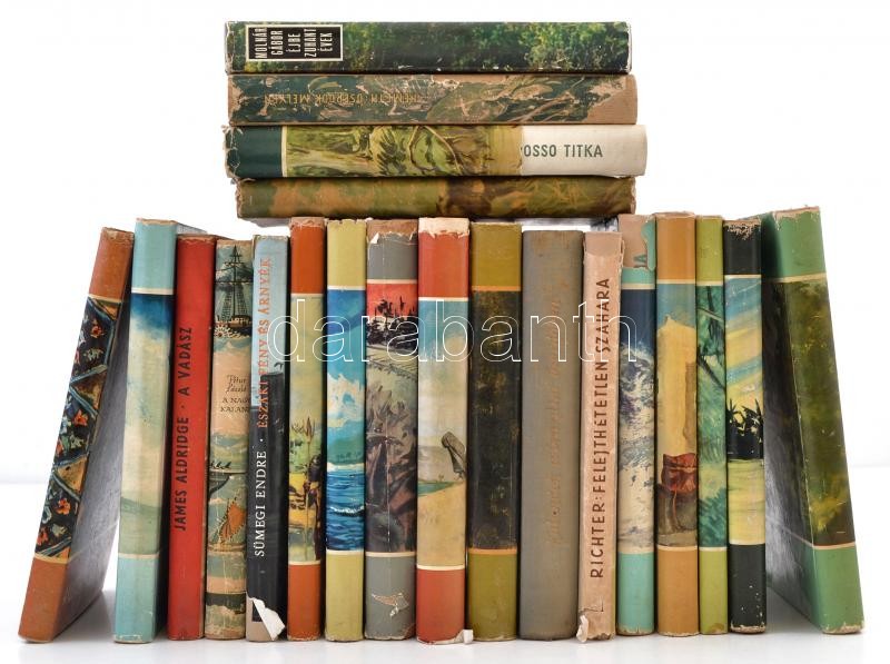 Vegyes könyvtétel, 21 db: Közte a világjárók sorozat 14 kötete, valamint két Molnár Gábor könyv. Különféle kiadásban, és kötésben. Változó állapotban.