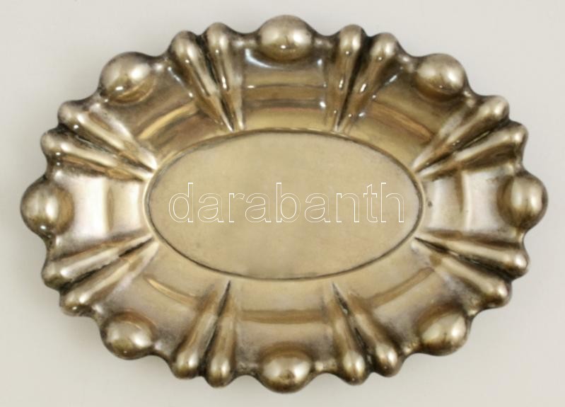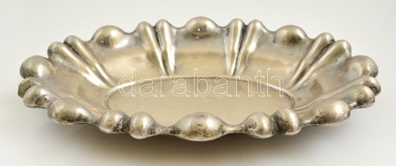 Ezüst (Ag.) hólyagos peremű tál, jelzett, poncolt, 30×21 cm, nettó:416...