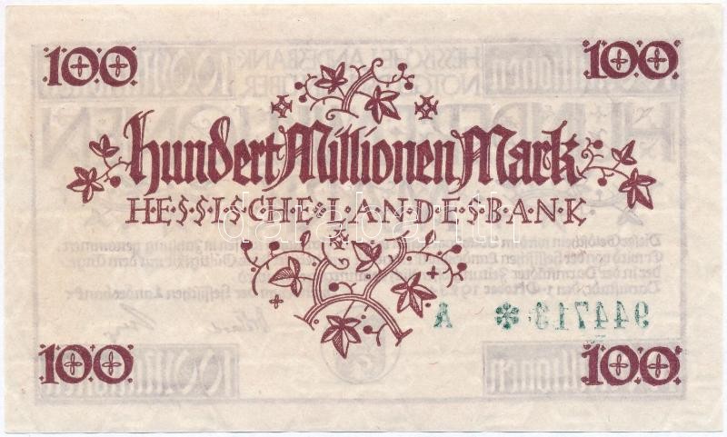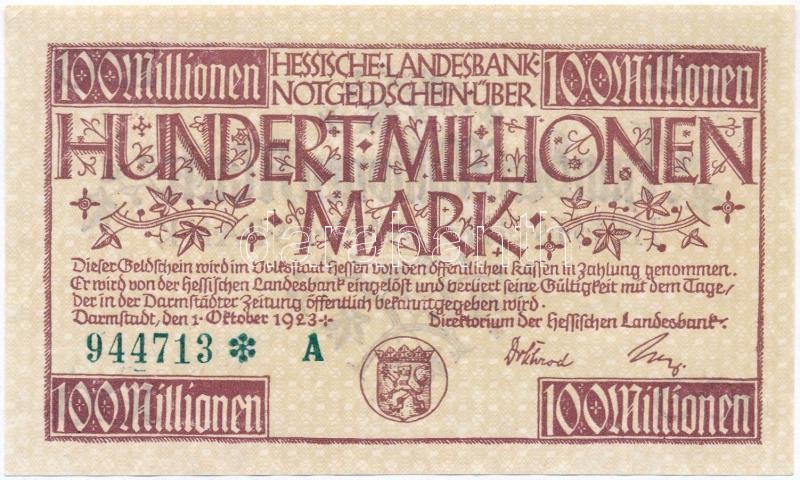 Németország / Weimari Köztársaság / Darmstadt 1923. 100.000.000M szükségpénz vízjeles papíron T:I-
