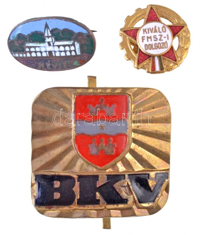 DN "BKV" aranyozott, zománcozott sapkajelvény + ~1960-1970. "Kiváló FMSZ-i Dolgozó" zománcozott, aranyozott jelvény + DN "Hévíz" zománcozott jelvény T:2