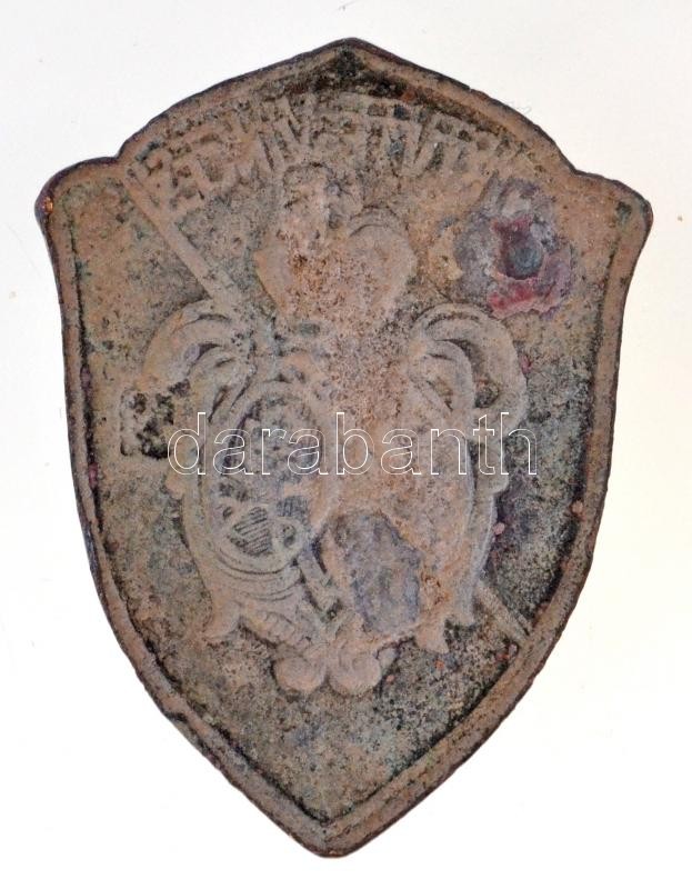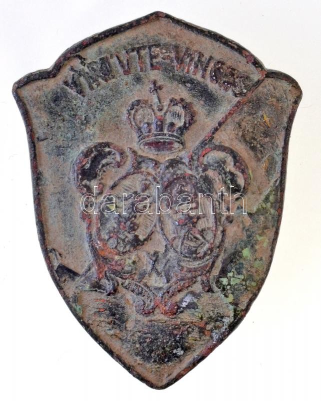 DN "VIRTUTE VINCES" fém lemezjelvény, tű nélkül, rajta a Jászói monostor jelmondatával és címerével T:2- hajlott lemez, patina