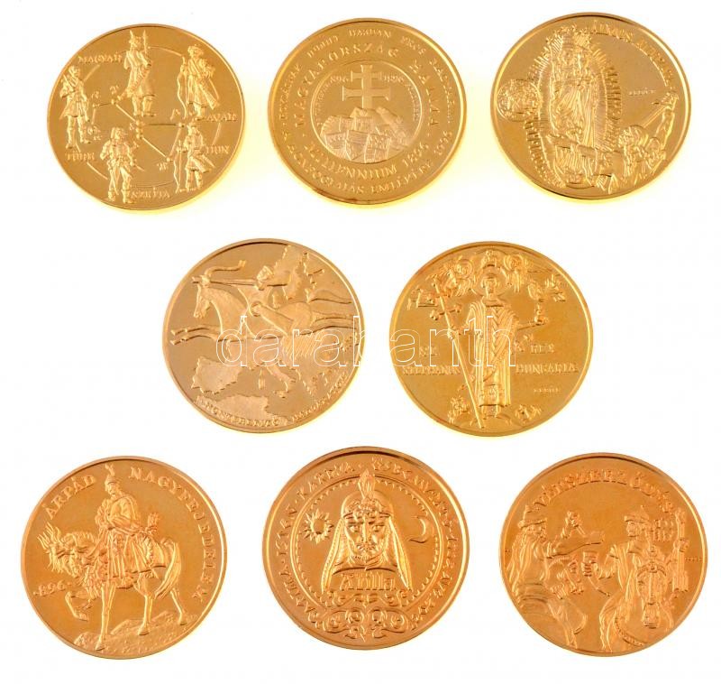 1996. "Magyarság Őstörténete és Honfoglalása Emlékérem sorozat" 8db klf aranyozott tombak emlékérem eredeti dísztokban, tanúsítvánnyal T:1-(PP)