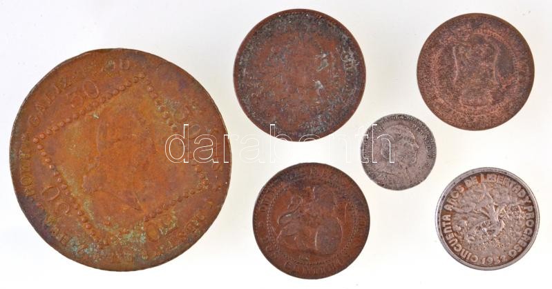 Description: 6db-os vegyes magyar és külföldi érme tétel, közte 1807S 30kr Cu "Ferenc", Hollandia 1850. 5c Ag "III. Vilmos" T:2-3