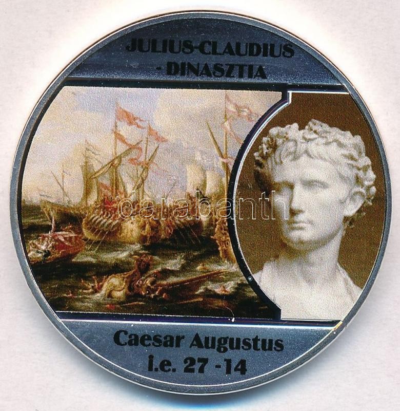 DN "A legnagyobb uralkodó dinasztiák - Julius-Claudius-dinasztia / Caesar Augustus i.e. 27-14" ezüstözött Cu emlékérem tanúsítvánnyal (40mm) T:PP