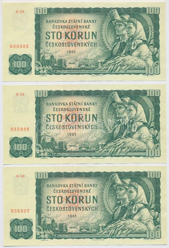 Czechoslovakia 1961. 100 Korun (3x) sequential serials C:XF
