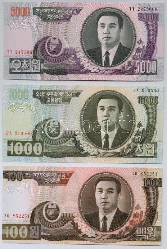https://www.darabanth.com/en/308-Online-auction/308.0/Numismatics/Worldwide-banknotes~300012/Eszak-Korea-1992-100W-plus-2006-1000W-plus-5000W-TI--North-Korea-1992-100-Won-plus-2006-1000-Won-plus-5000~II1675451