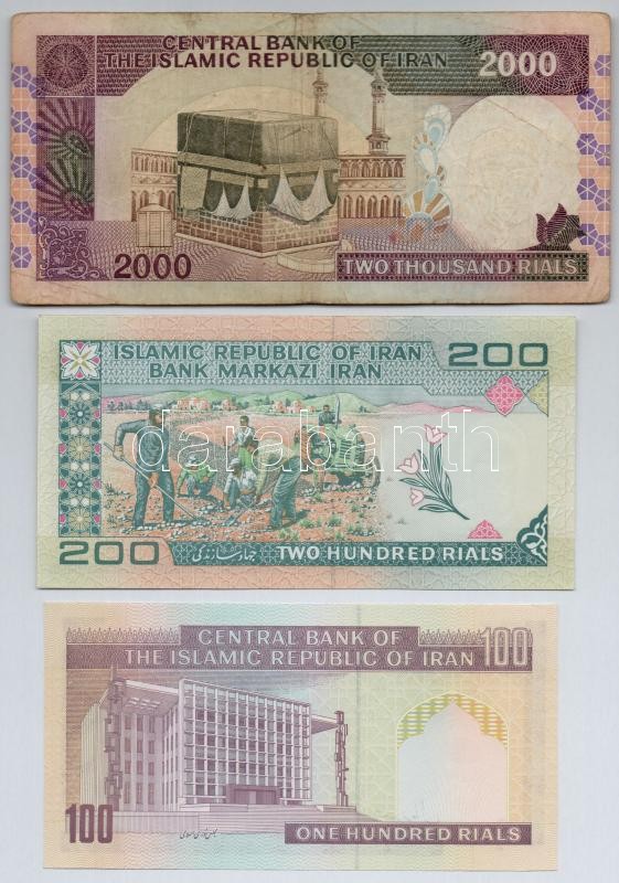 Iran 1982- 200 Rials + 1985- 100 Rials + 1986- 2000 Rials C:UNC,VG