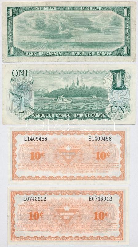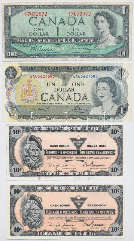 Kanada 1961-1972. 1$ + 1973. 1$ + 1987-1989. 10c "Canadian Tire Corportaion Limited" vásárlási utalvány (2x) T:III,III-