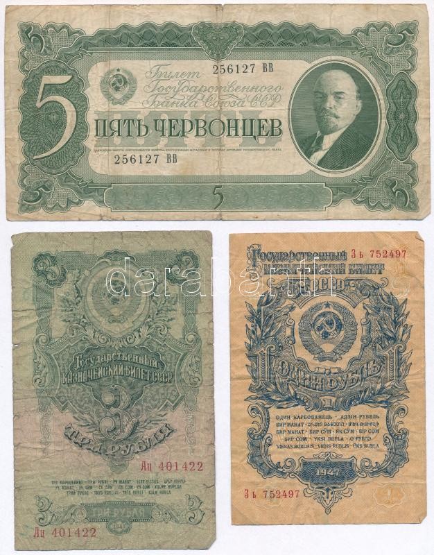 https://www.darabanth.com/en/308-Online-auction/308.0/Numismatics/Worldwide-banknotes~300012/Szovjetunio-1937-5Ch-plus-1938-1R-plus-5R-plus-1947-1R-plus-3R-TIII-III---Soviet-Union-1937-5-Chervontsev-~II1675630