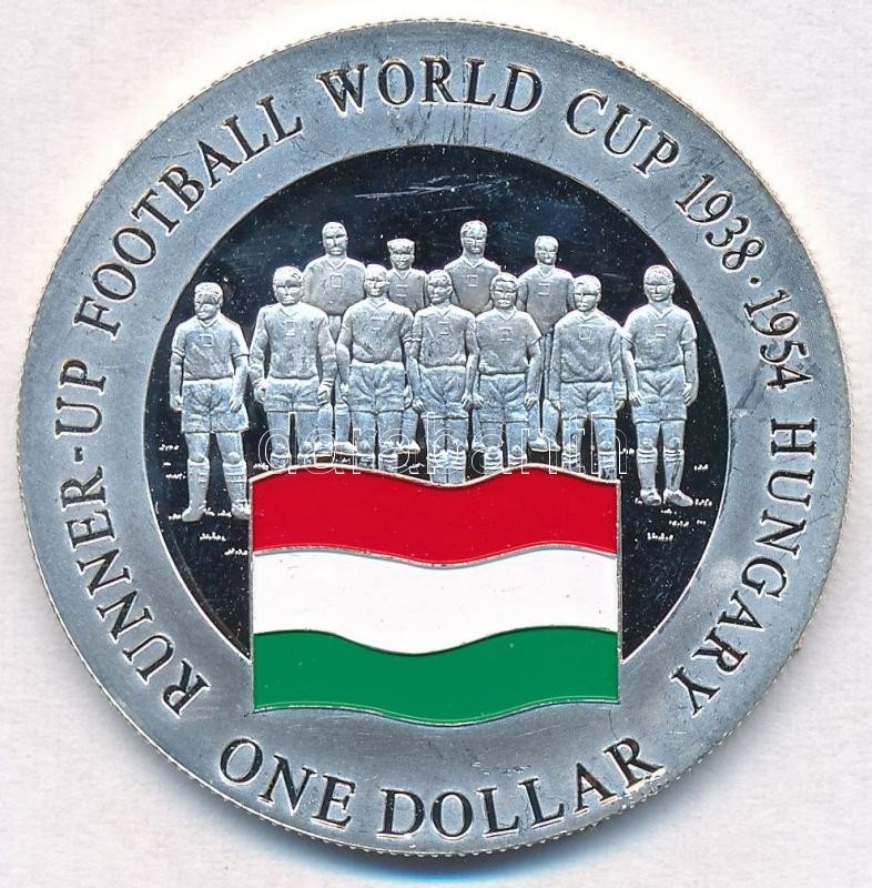 Cook Islands 2001. 1 Dollar Ag "Runner-Up Football World-Cup 1938 / Hungary 1954" C:PP edge error