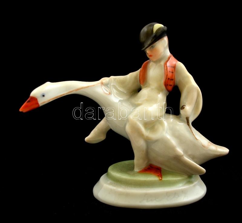 Herendi porcelán Ludas Matyi, kézzel festett, hibátlan, jelzett m: 8 c...