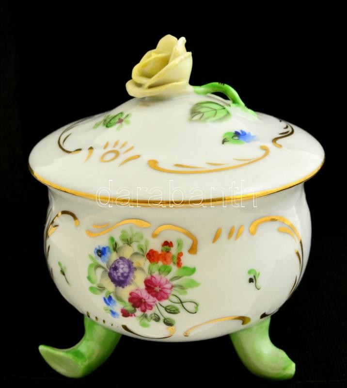 Herendi virágmintás bonbonier, tetején rózsával, kézzel festett, jelze...
