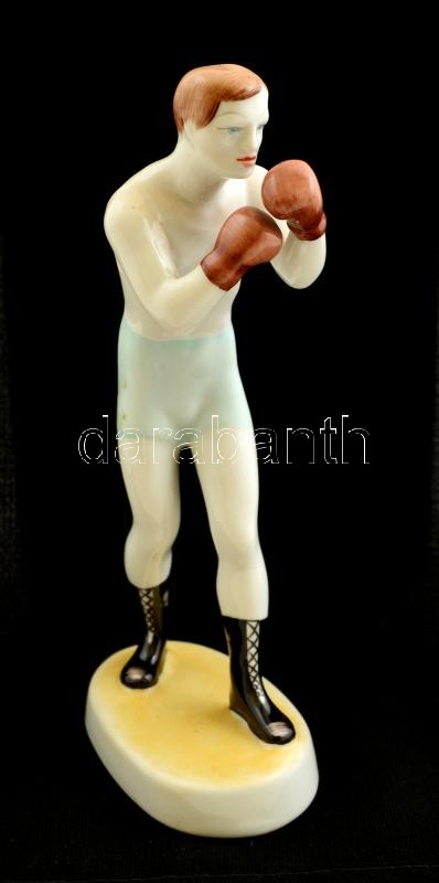 Hollóházi porcelán bokszoló, kézzel festett, jelzett, hibátlan, m:20 cm