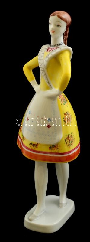 Hollóházi porcelán néptáncos lány, kézzel festett, jelzett, hibátlan, m: 24 cm