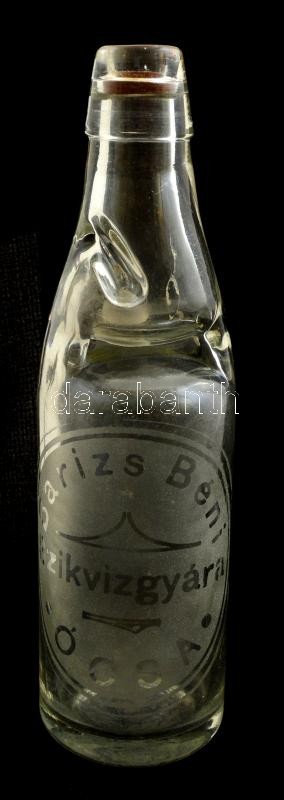 Barizs Béni Szikvízgyára Ócsa üvegpalack, belsejében repedéssel, szájá...