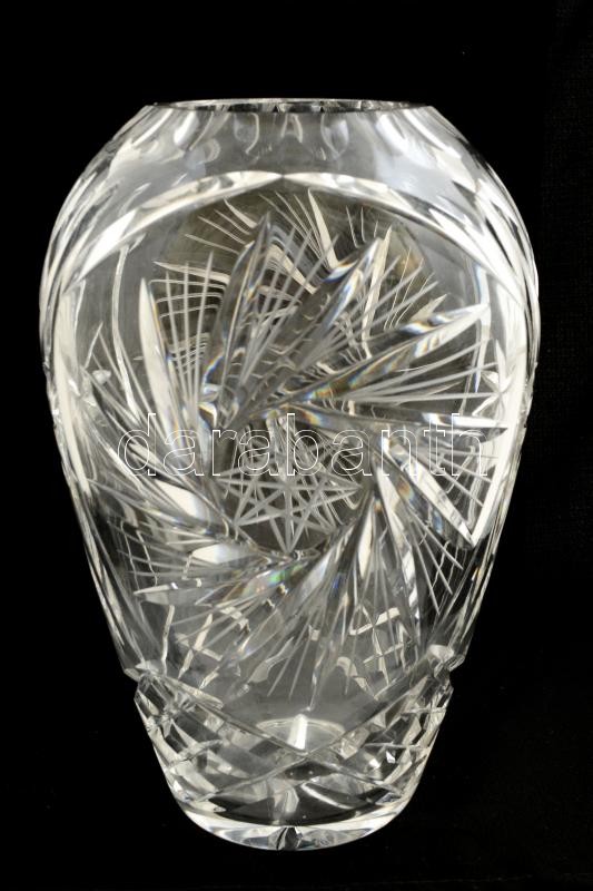 Ólomkristály váza, csiszolt, jelzés nélkül, hibátlan, m: 21 cm