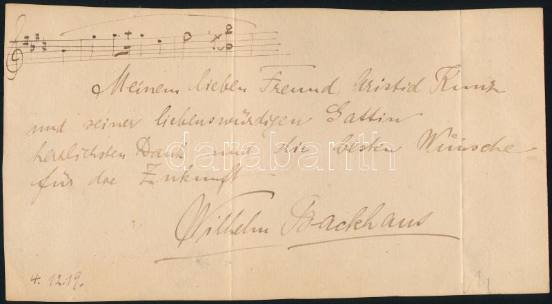 1919 Wilhelm Backhaus (1884-1969) zeneszerző és zongoraművész saját ké... https://www.darabanth.com/en/308-Online-auction/308.0/Other-collectibles/Historical-documents-manuscripts~17/1919-Wilhelm-Backhaus-1884-1969-zeneszerzo-es-zongoramuvesz-sajat-kezzel-irt-sorai-es-kott~II1669378