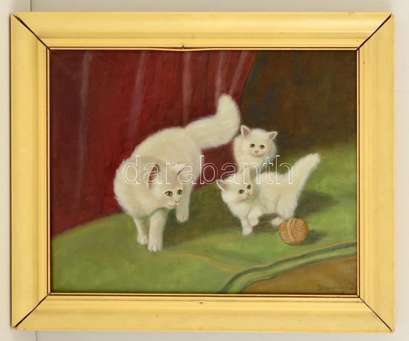 Szorády jelzéssel: Cicák. Olaj, vászon, fa keretben, 39x49 cm