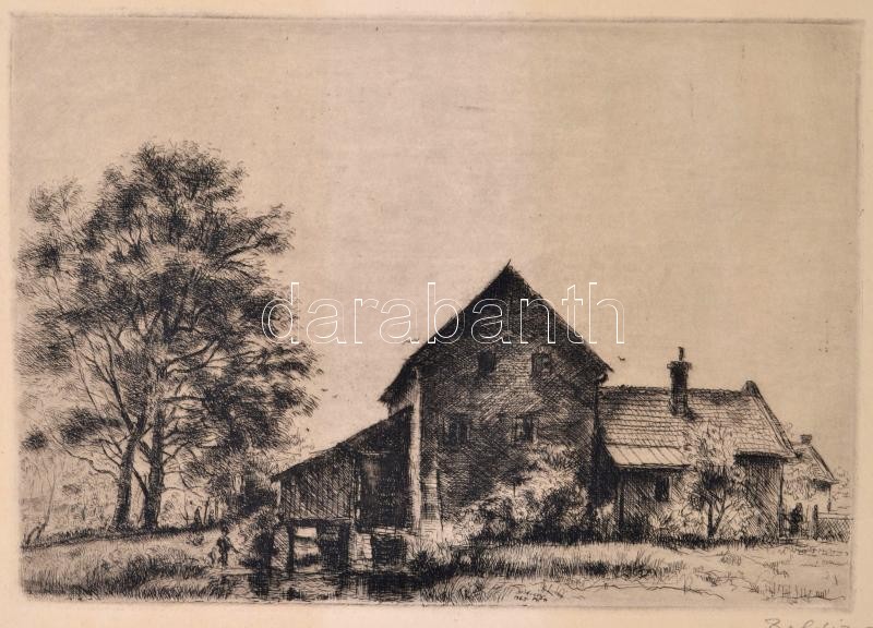 Boldizsár István (1897-1984): Vízimalom. Rézkarc, papír, jelzett, 16x2...
