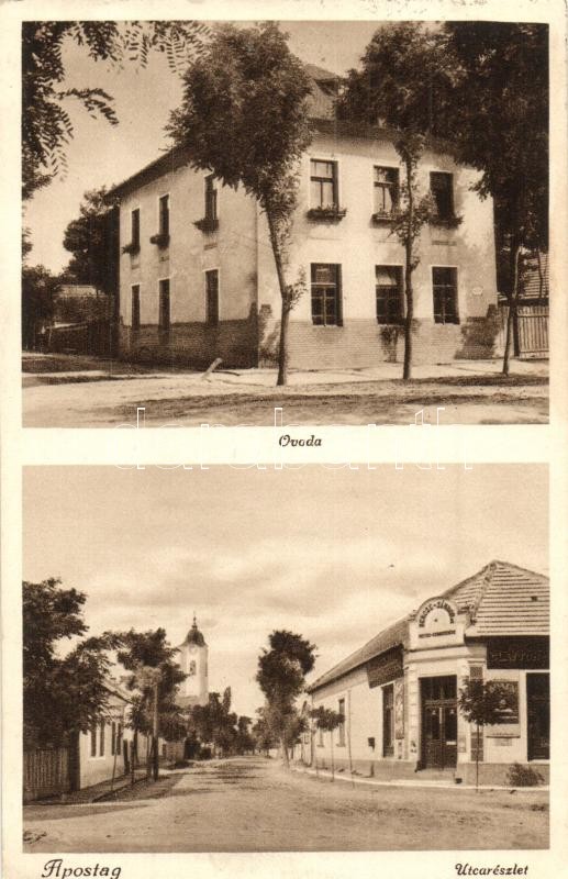 Apostag, Óvoda, utcakép, Bencze Sándor üzlete