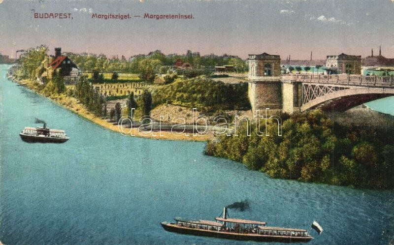 Budapest XIII. Margitsziget, gőzhajók, híd (EK)