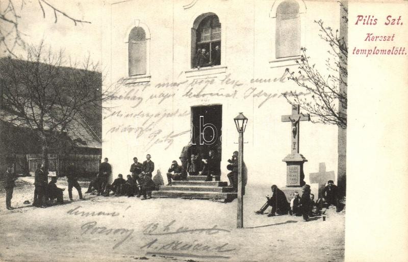 Pilisszentkereszt, Templom előtt. Stern Jakab kiadása