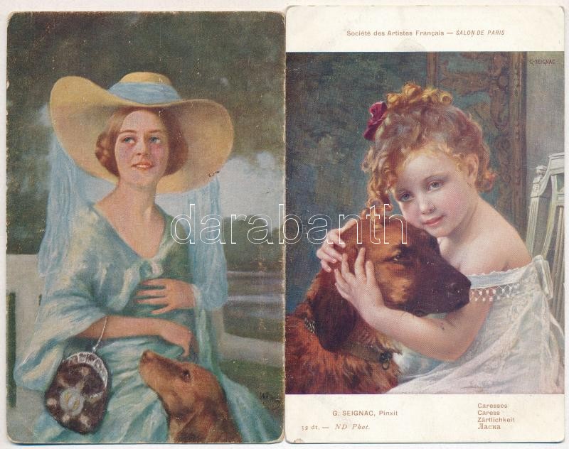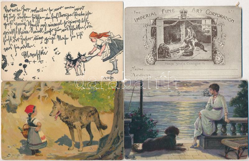 6 db RÉGI kutyás motívumlap, vegyes minőség / 6 pre-1945 dog motive cards, mixed quality