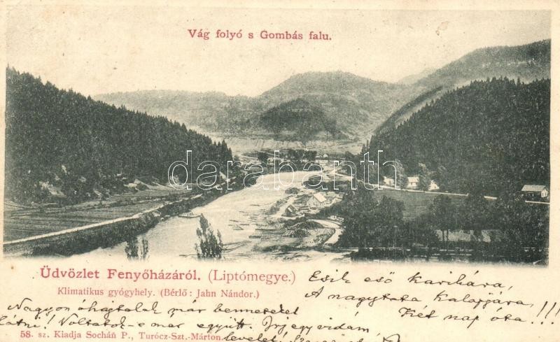 Fenyőháza, Lubochna; Vág folyó és Gombás falu, klimatikus gyógyhely. Sochán P. kiadása / Váh river and village detail