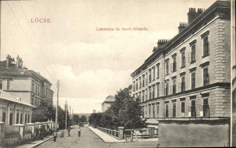 Lőcse, Levoca; Laktanya és tiszti étkezde. Singer kiadása / military b...