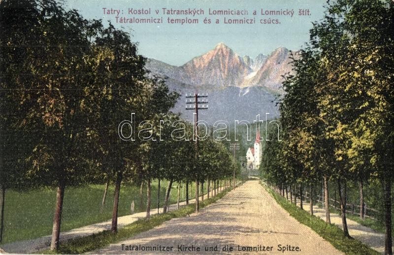 Tátralomnic, Tatranska Lomnica; templom és a Lomnici csúcs, Földes Sam... https://www.darabanth.com/en/308-Online-auction/308.0/Postcards/Slovakia~400009/Tatralomnic-Tatranska-Lomnica-templom-es-a-Lomnici-csucs-Foldes-Samu-kiadasa-Tatralomnitz~II1590337