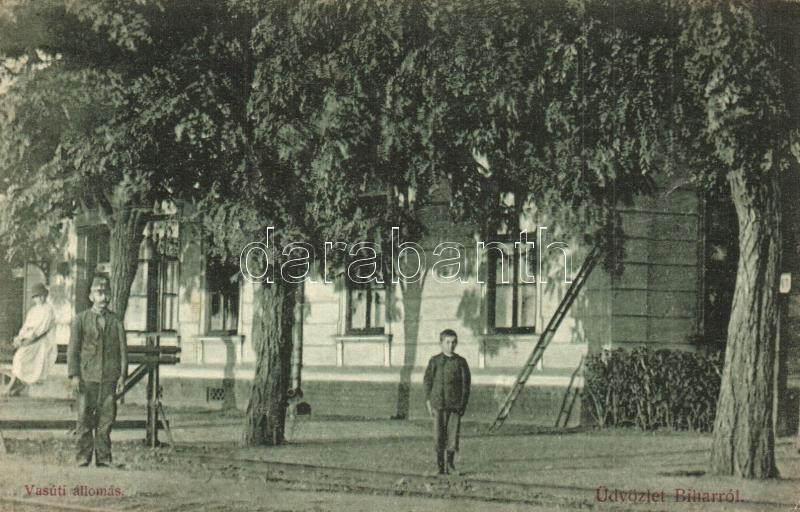 Bihar, Biharia; Vasútállomás, vasutas, létra. Boros Jenő kiadása / rai...